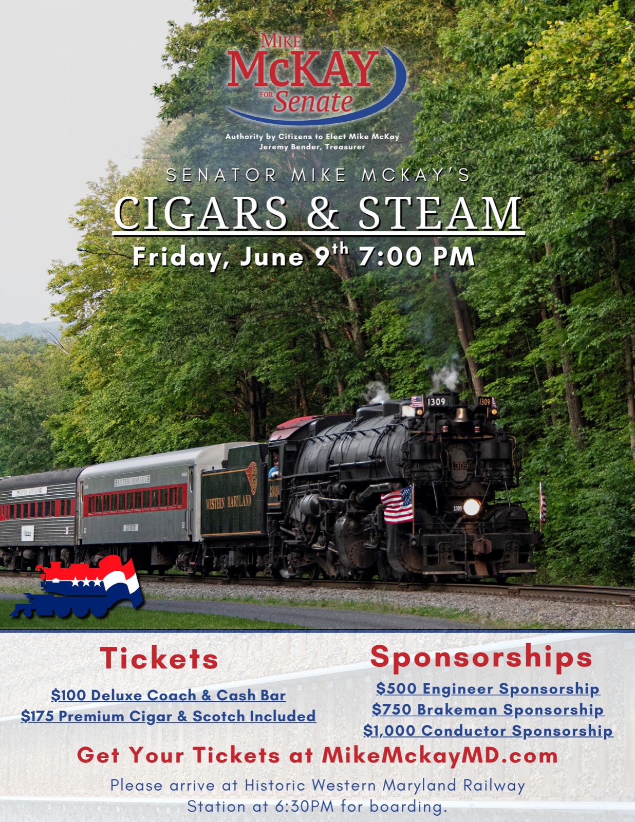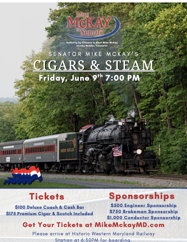 Join Senator Mike McKay for an Evening of Cigars & Steam Board the historic Western Maryland Scenic Railroad for an unforgettable evening of cigars, scotch, and good company. Please arrive […]