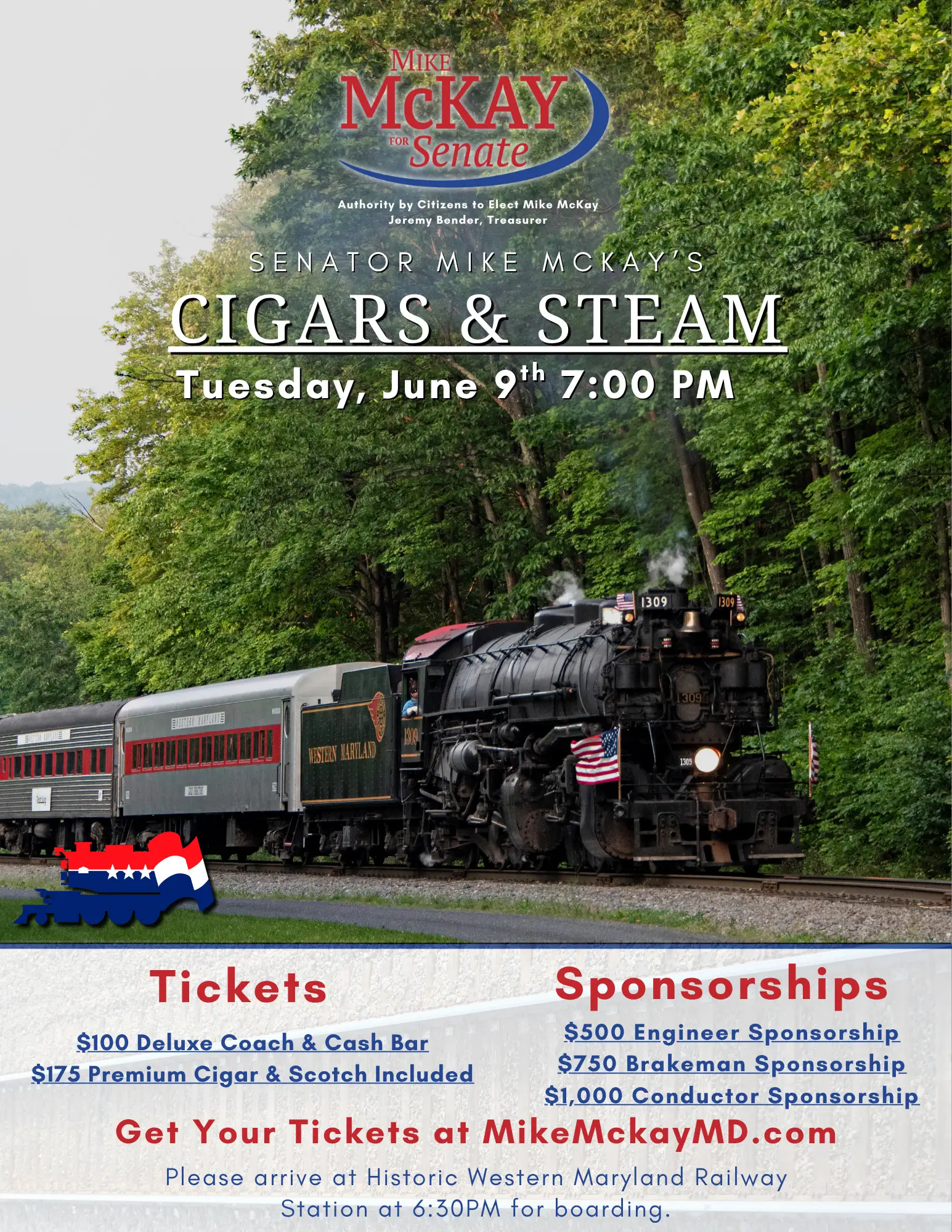 Join Senator Mike McKay for an Evening of Cigars & Steam Board the historic Western Maryland Scenic Railroad for an unforgettable evening of cigars, scotch, and good company. Please arrive […]